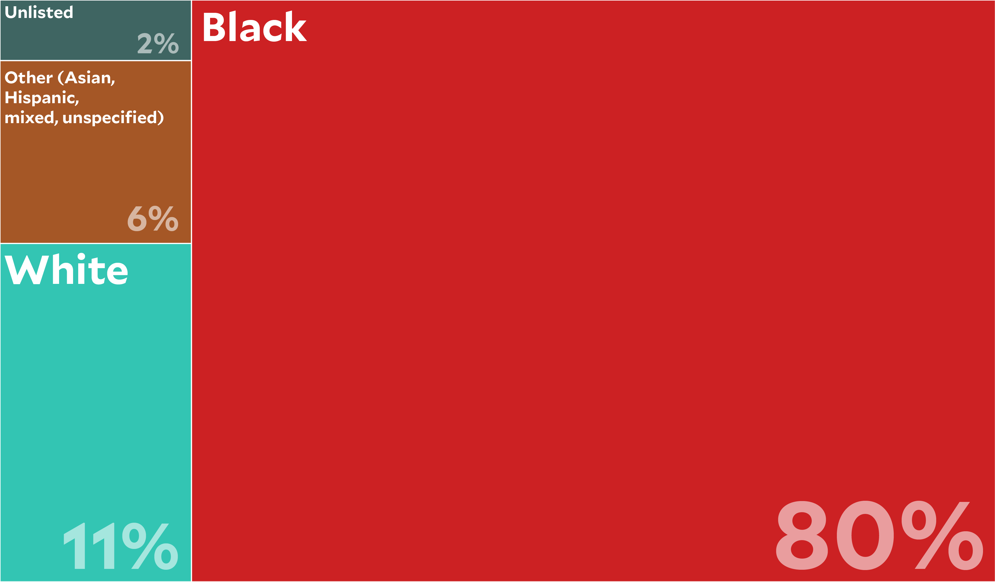Police could not provide race data in about 2 percent of cases. Age data is missing in about four percent of cases.